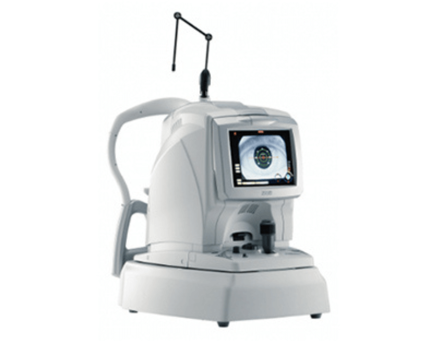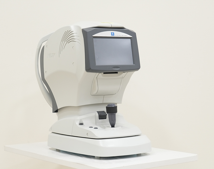 近視・乱視・遠視などの屈折異常の程度や角膜曲率を測定します。合わせて眼圧測定で緑内障や高眼圧症の検査もできます。当院ではレフケラトメーターと眼圧計のハイブリッドタイプを導入しています。