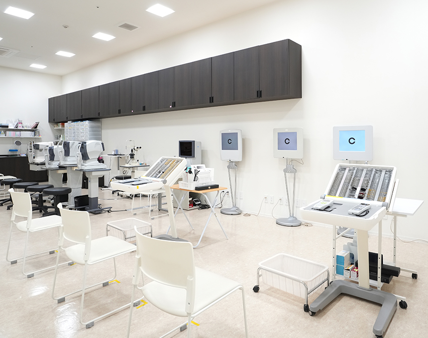 眼の緊張状態をほぐす、雲霧という機能を備えています。長時間の近業(デスクワーク、お子様などの勉強、細かな作業の趣味)等で凝り固まった毛様体筋の緊張をリラックスさせ、正確な視力検査を行っていきます。