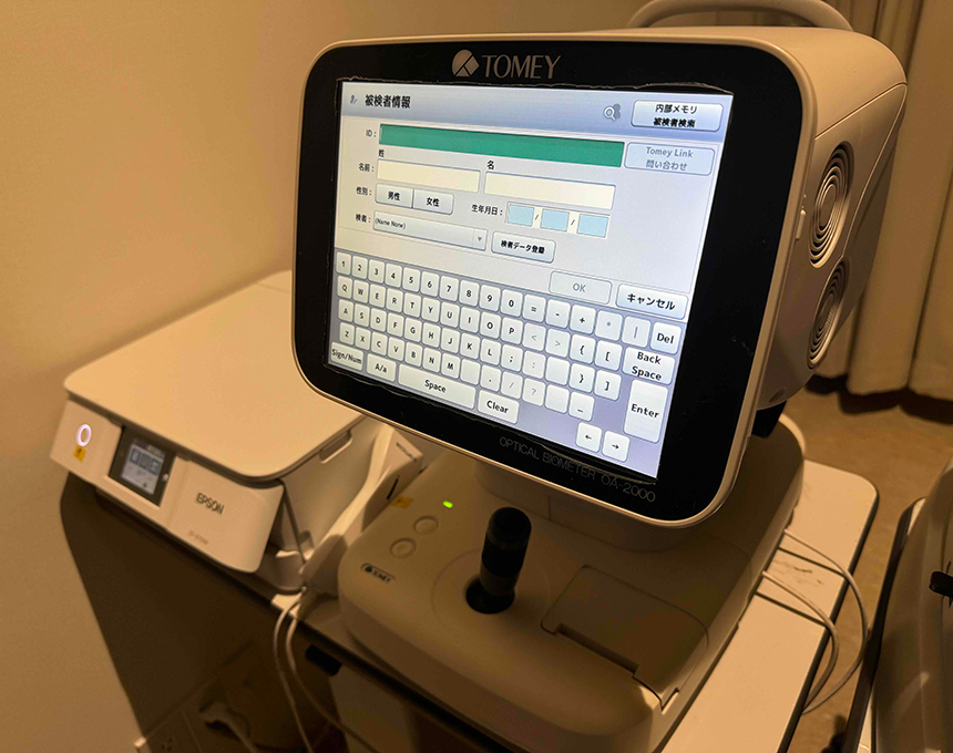 術後の屈折度数を決める眼内レンズの度数を正確に測定する器械です。手術後は強度の近視の方も近視を改善することができます。今までの器械は1箇所で網膜までの測定を行っていましたが、この器械は41カ所で測定するため、濁りの強い白内障でも正確に眼内レンズの度数が測定できるようになりました。またこの器械で詳しい角膜の形状解析も行うことができます。