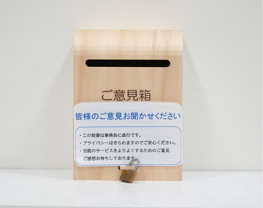 今後のクリニックの発展のために、ぜひ皆様からのご意見を賜りたいと思います。ご希望の方には、直接回答もいたします。