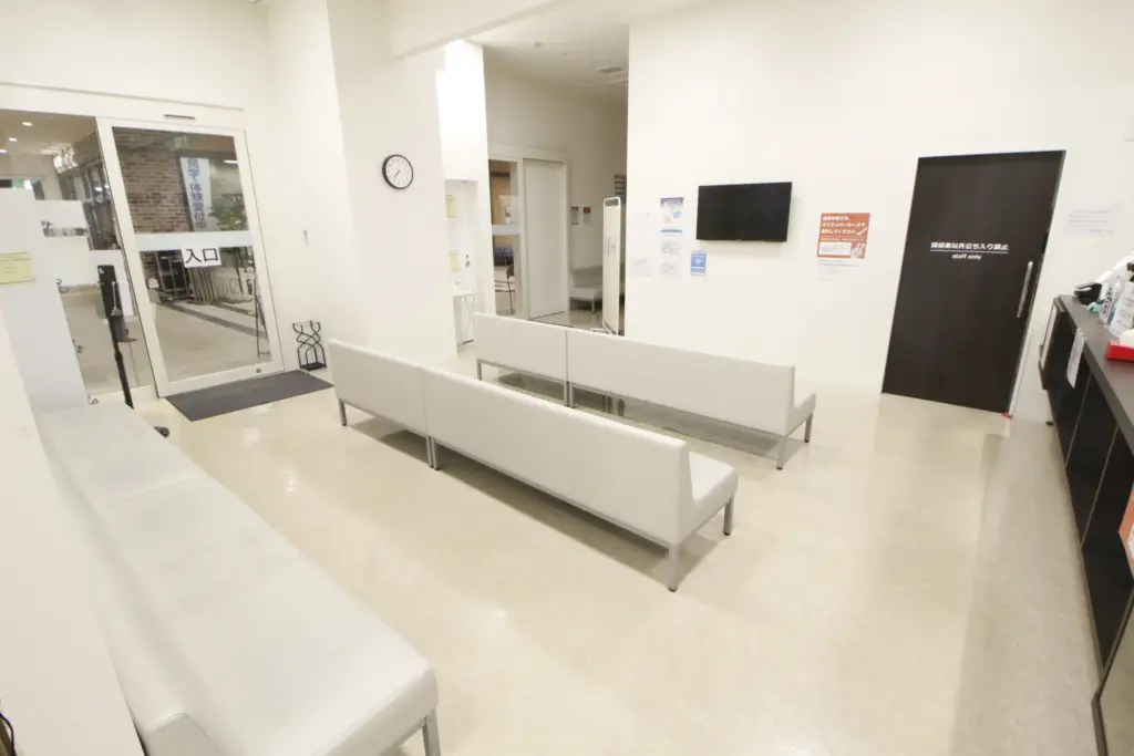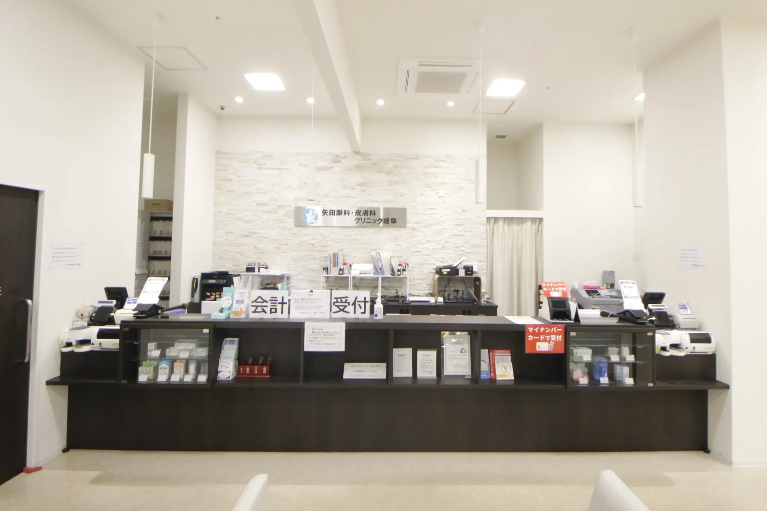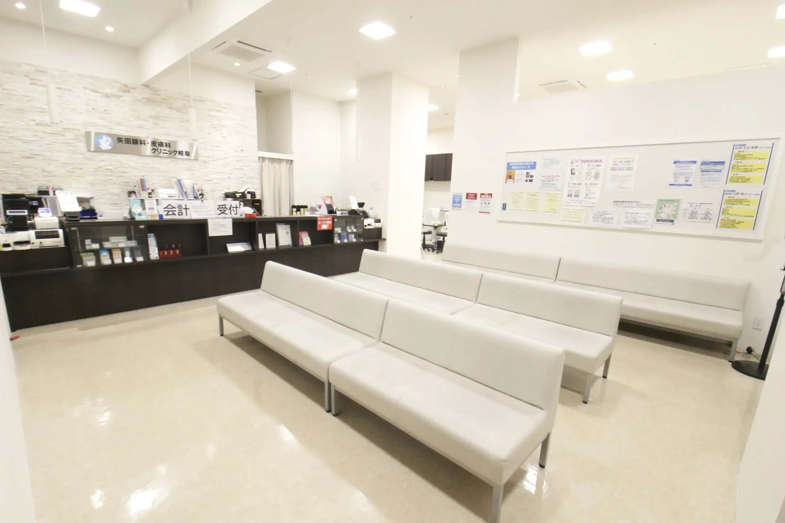 レンガ調の外観と白を基調とした明るい受付・待合室となっております。