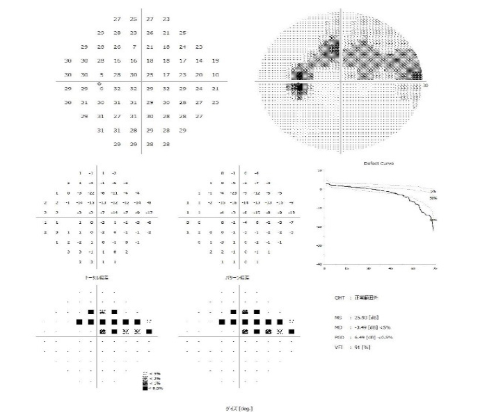 視野検査をすると視野が欠け始めていました(下図の黒い部分)